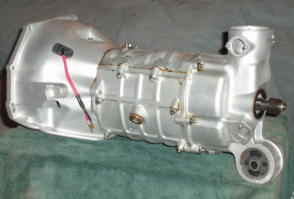 The rear tower is added, along with a new rear seal. Then the belhousing is added, along with another new seal and the cluch fork, throwout bearing, and reverse switch.